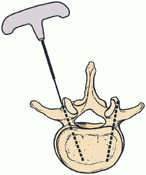 FIGURE 19-25. Insertion of pedicle screw medially and inferiorly close to the anterior cortex without penetrating it.
