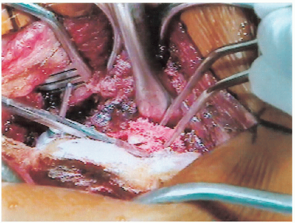 and the bone graft placed in the lateral gutter before final insertion of the screws (Fig. 19-28).