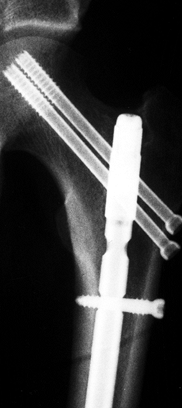 Figure 14.14. Left femoral neck fracture after screw fixation at 6 weeks, anteroposterior view.