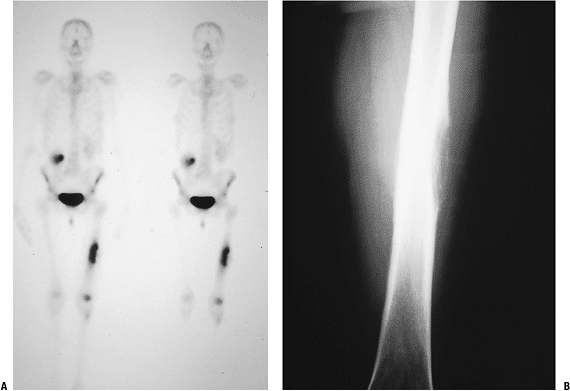 MetastasesPrimary Tumor Pts. with Metastatic Disease (%) Pts. with Metastases who Have Bone Involvement Clinically (%) Median Survival After Diagnosis of Metastases (mo) Mean 5-year Survival Rate (%) Breast carcinoma 65–75 24 20 Prostate carcinoma 65–75 30–40 40 25 Lung carcinoma 30–40 20–40 <6 <5 Renal carcinoma 20–25 15–25 6 10 Thyroid carcinoma 60 20–40 48 40 Multiple myeloma 95–100 100 20 10 Data from Coleman RE. Skeletal complications of malignancy. Cancer 1997;80:1588–1594. ![]() Figure 8-2 Common sites of metastases to bone, in order of relative frequency.Table 8-3 Circulation Theory of Metastatic Distribution Figure 8-2 Common sites of metastases to bone, in order of relative frequency.Table 8-3 Circulation Theory of Metastatic DistributionCirculatory Component Consequent Site of Metastases Systemic (caval) venous circulation Lung Portal venous circulation Liver Batson’s vertebral venous plexus Bone Pulmonary venous circulation All organs, bones P.232 Figure 8-3 Disruption by tumor cells of normal osteoblast–osteoclast interaction via OPG-ligand. Figure 8-3 Disruption by tumor cells of normal osteoblast–osteoclast interaction via OPG-ligand.![]() Algorithm 8-1 Diagnostic work-up of metastatic tumors. Algorithm 8-1 Diagnostic work-up of metastatic tumors.