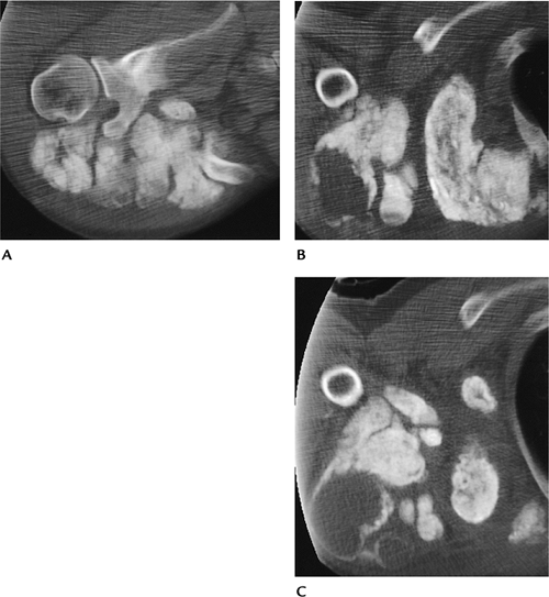 into the metaphysis or epiphysis, but soft tissue and joint involvement