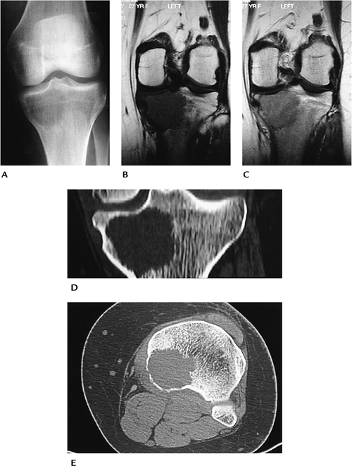 Kransdorf MJ, Berquist TH. Musculoskeletal neoplasms. In: Berquist TH, ed. MRI of the musculoskeletal system, 5th ed. Philadelphia: Lippincott Williams & Wilkins; 2006:802–915.