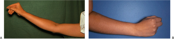 duration (Fig. 16-22A). Radiographs revealed a lucency consistent with a lipoma present in this vicinity of the radial head (Fig. 16-22B).