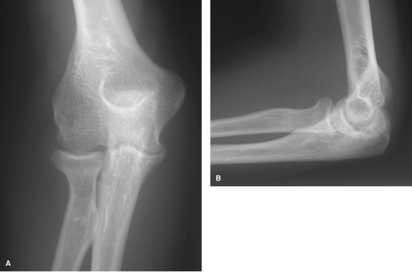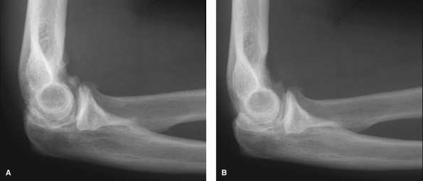 Figure 62-2 A: Stage I rheumatoid arthritis. B: Stage I rheumatoid arthritis.