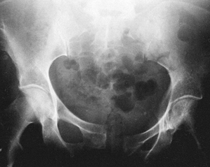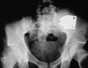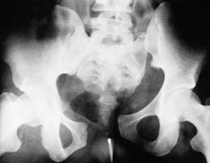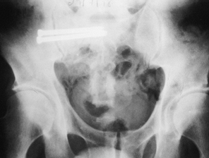 Figure 28.1. Very unstable vertical shear fracture of the pelvis.