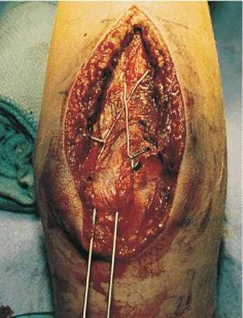 completed. The open wounds are extended as needed. Fixation proceeds as
