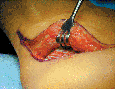 Figure 35.24. The superolateral fragment is cleaned of clot to assure perfect interposition during reduction.