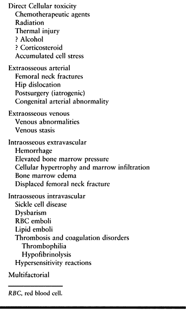 pathogenesis of osteonecrosis. They can be categorized into six groups: