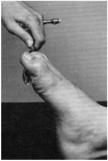 stimuli may produce confusing withdrawal. If the toe is briskly