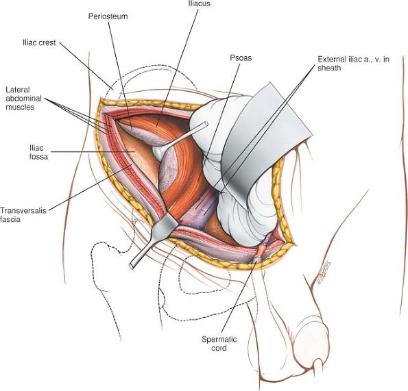 outer wall of the ilium. Initially, cut down onto the bone using a