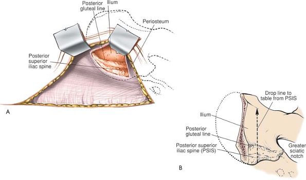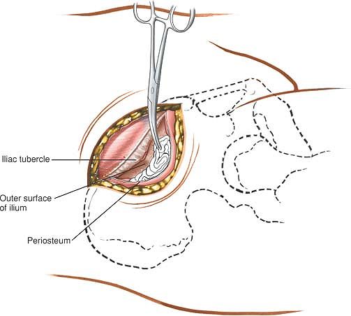 iliac wing and the overlying muscles. Using a blunt instrument,