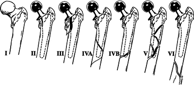 Figure 6.2. American Academy of Orthopaedic Surgeons classification of fractures associated with hip arthroplasty.