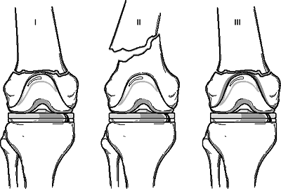 | Type II: | Fractures involving cement/implant composite and/or quadriceps mechanism |