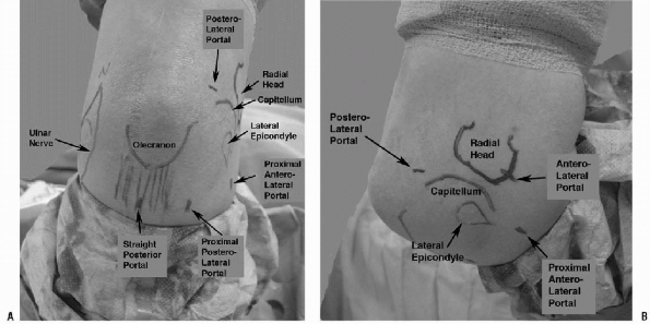 The anterolateral portal, usually the standard diagnostic portal, typically is the first established after elbow distention (Fig. 11-4).