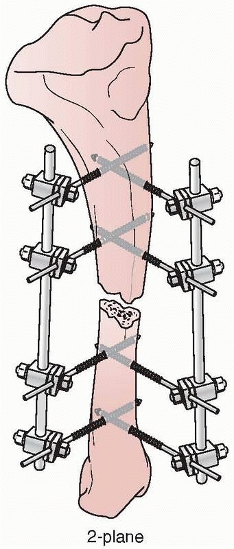 stabilized by one-plane or two-plane external fixation. J Bone Joint