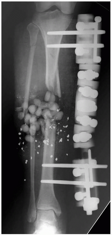 problems of treating high-energy open fractures.99 This resulted in a directive issued to military surgeons of the U.S. Armed Forces to discontinue the use of external fixation.93