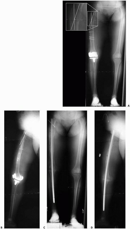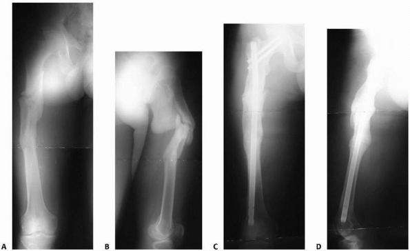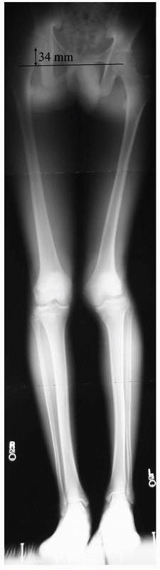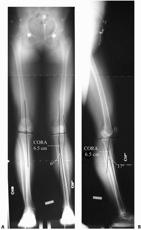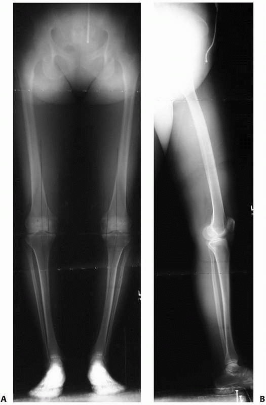 AP and lateral 51-inch alignment radiographs are obtained for lower extremity deformities to evaluate limb alignment (Fig. 26-2). Flexion/extension lateral radiographs may be useful to determine the arc of motion of the surrounding joints.