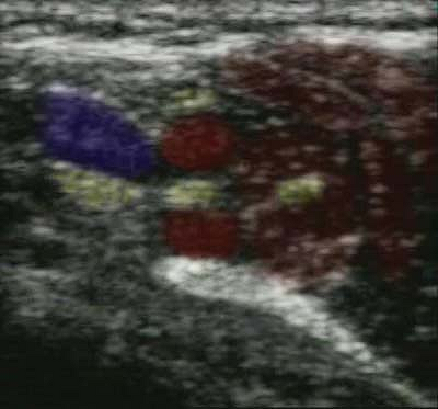 Figure 32-5. Above the collar bone, nerves are usually dark (hypoechoic).