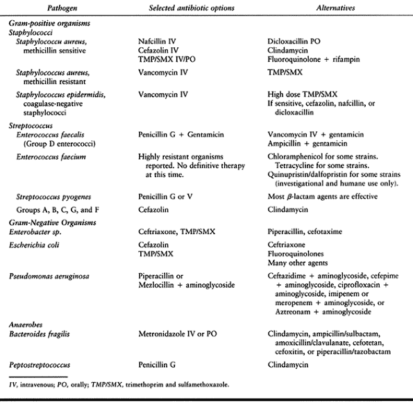abscess, followed by parenteral or oral antibiotics, depending on the