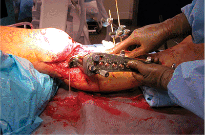 Figure 27.19. A,B. Final fixation of fracture using LISS.