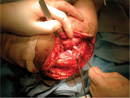 A 2.0-mm blade plate and screws were used to repair the fracture, which consisted of two large head fragments and substantial metaphyseal comminution. D. The lateral collateral ligament was also repaired. (Copyright © David Ring, MD.) |