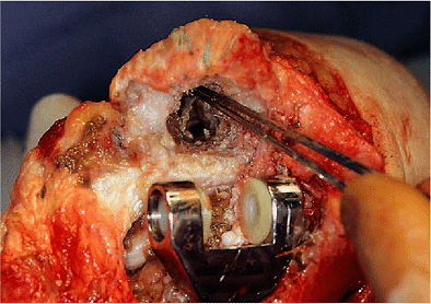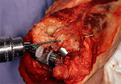 All endosteal soft tissue is carefully removed and the canal is plugged with a Silastic device or with cancellous bone.