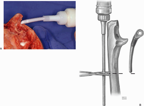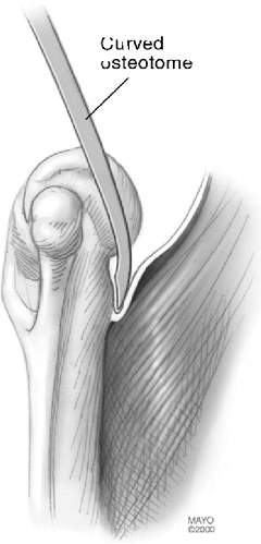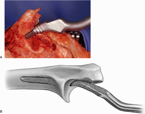 Figure 18-8. The tip of the olecranon is removed with a rongeur or oscillating saw if the bone is dense.