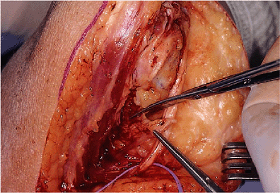 Figure 18-42. Exposure of the distal humerus at the medial aspect of the triceps.