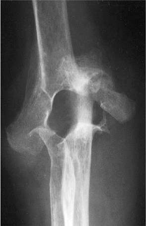 the very severe grade IV type of rheumatoid arthritic elbows as well as