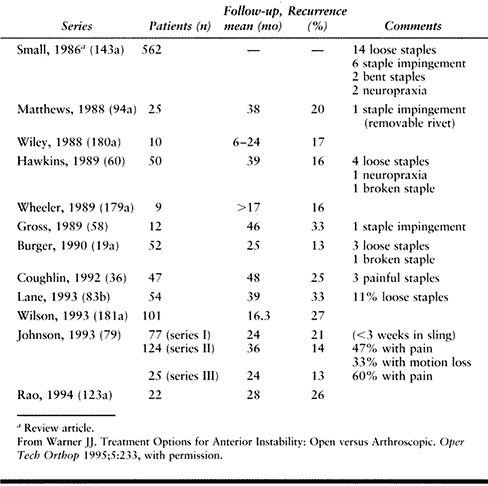 for Anterior Shoulder Instability: Stapling versus Suturing. Orthop Trans1994;17:972.