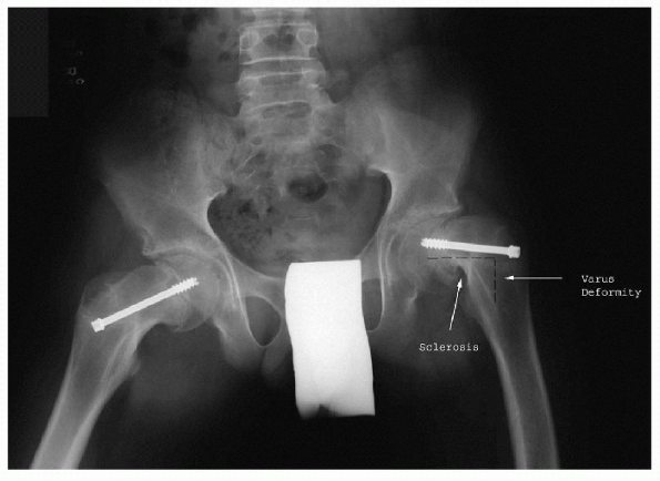 respect to the epiphysis, resulting in a varus deformity of the hip
