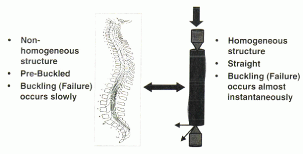 Figure 31-10 The human spine is a prebuckled nonhomogeneous structure in which pathologic buckling occurs gradually.