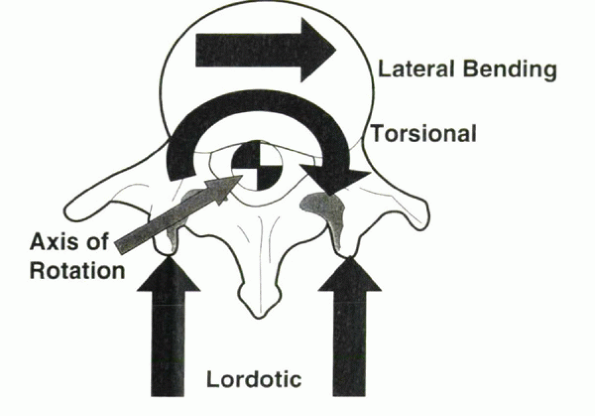 The instantaneous axis of rotation (IAR) in vivo is influenced by the relationship of one vertebra with another and the orientation of both vertebrae in relation to a global reference frame. |