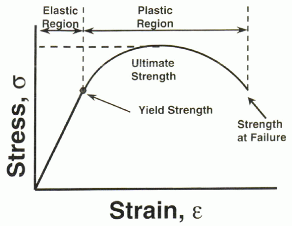 Figure 31-2 Stress versus strain curve illustrating the elastic and plastic regions of a material under static loading conditions.