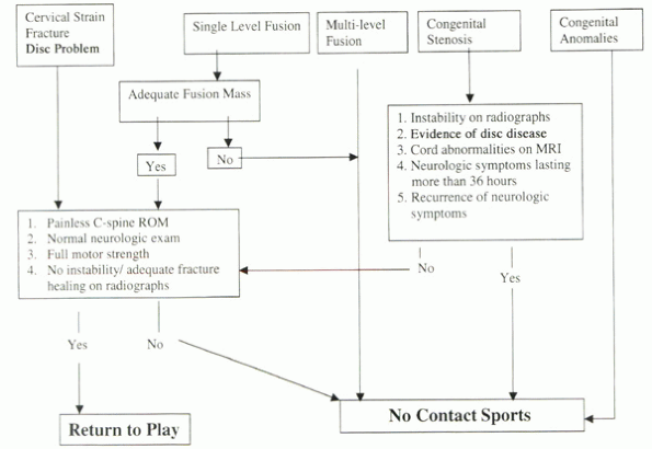 Algorithm 7-1 Return-to-play criteria after cervical spine injury.