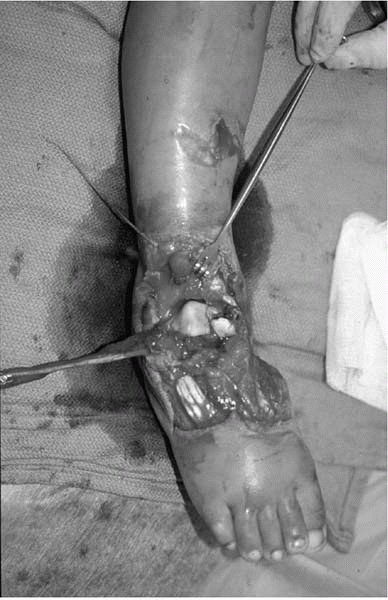 Most open fractures in children are grade 1 open injuries to the forearm or leg. Unfortunately, open ankle and foot injuries are also common in urban areas when young feet are under moving car tires. |