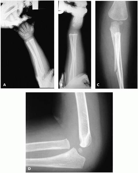 forearm, as well as isolated elbow radiographs. The ulna should be