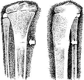 Fig. 2. Stress fracture of the tibia, with sclerosis and periosteal reaction.