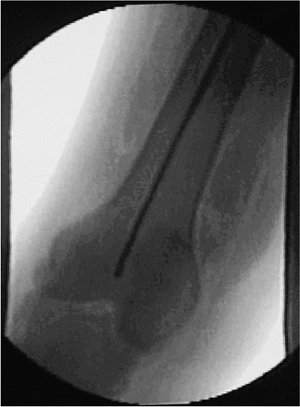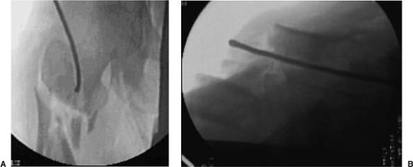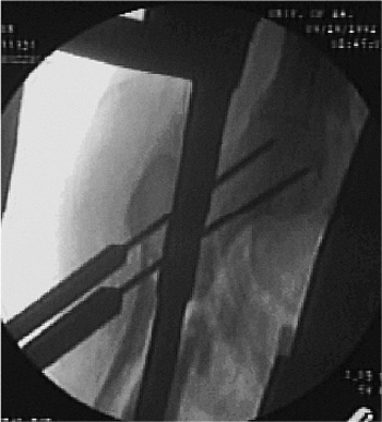 The guide wire should be placed 4 to 5 mm above the medial femoral