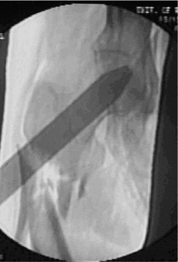 Figure 20.3. Subtrochanteric fracture with intact greater trochanter and fracture of the lesser trochanter.