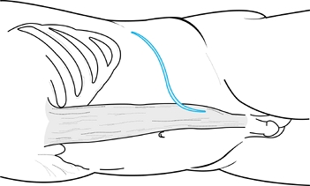 L-5. Make the incision one fingerbreadth lateral to the spinous