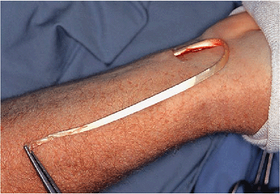 Figure 15-20. The ipsilateral palmaris longus tendon has been harvested.