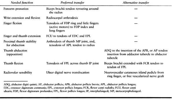 elective transfer procedures (15). Previously repaired tendons may be used for transfer only under optimal conditions (7).