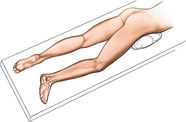 aspect of the ankle joint. Begin about 10 cm proximal to the joint, and
