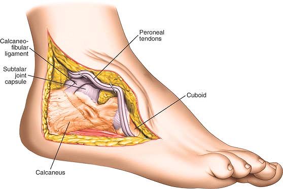 calcaneus, the calcaneocuboid, and subtalar joints. It is mainly used