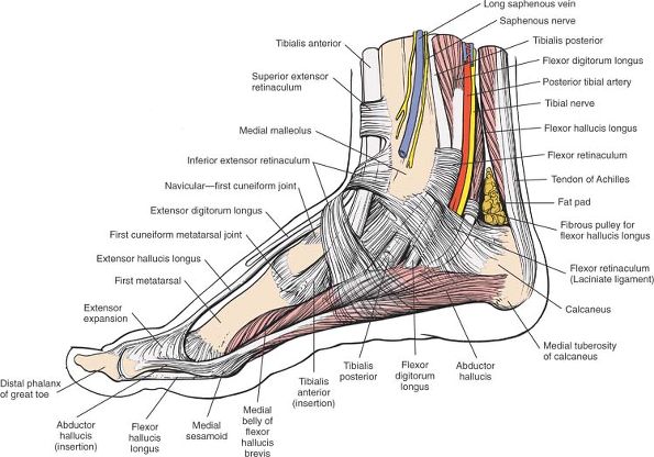 it contains the neurovascular bundle distal to the ankle (see Figs. 12-58 and 12-59).