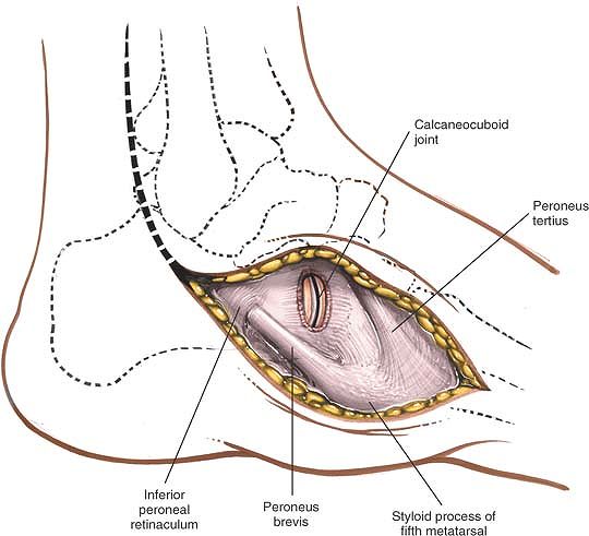 The lateral approach to the calcaneus exposes the lateral aspect of the