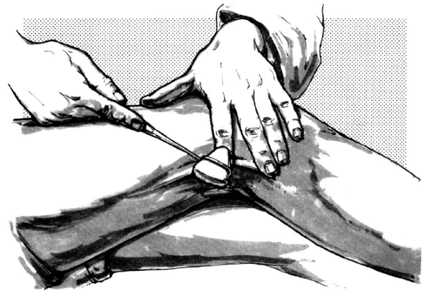 crisp blow must be delivered to quickly stretch the tendon. A heavy,