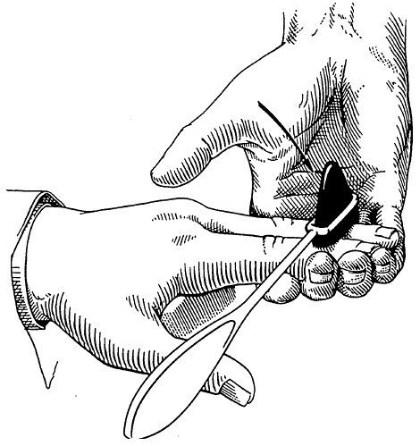 FIGURE 28.12 • Method of obtaining the biceps femoris reflex.