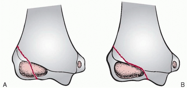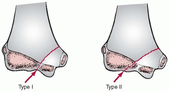 preoperatively as Milch type I fractures (Fig. 15-1) were unstable, and five of eight fractures classified preoperatively as Milch type II fractures (Fig. 15-2) were extra-articular, extending across the distal humeral physis medially. Mirsky et al.122